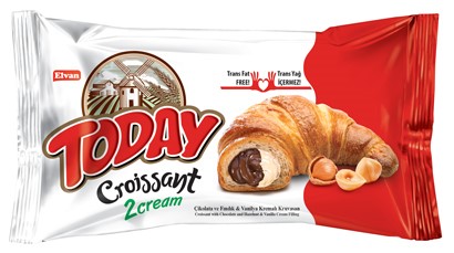 Croissant s náplní s příchutí čokolády, lískových oříšků a vanilky Složení: