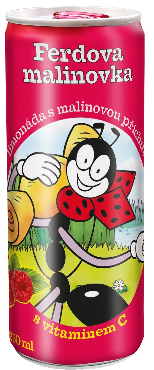Limonáda s malinovou příchutí, sycená, s vitamínem C. Pasterováno.