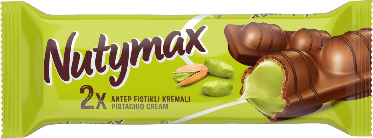 Oplatka (13%) s pistáciovým krémem (42%), polevou z mléčné